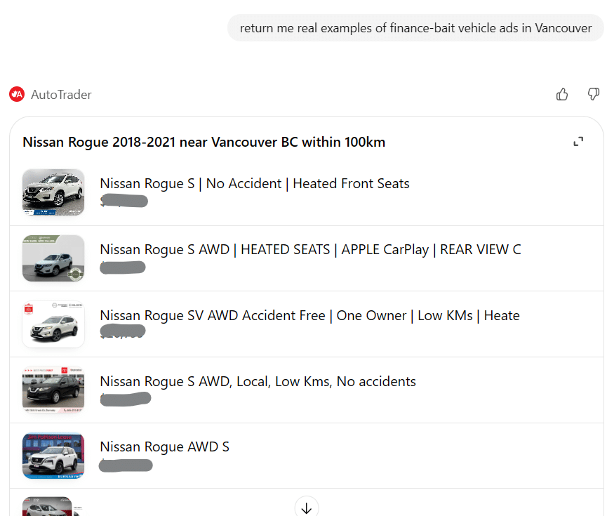 A GPT does not just surface listings. It analyzes how those listings are written. Payment anchoring, conditional pricing, long financing terms, and vague disclosures become easier to spot, compare, and question.